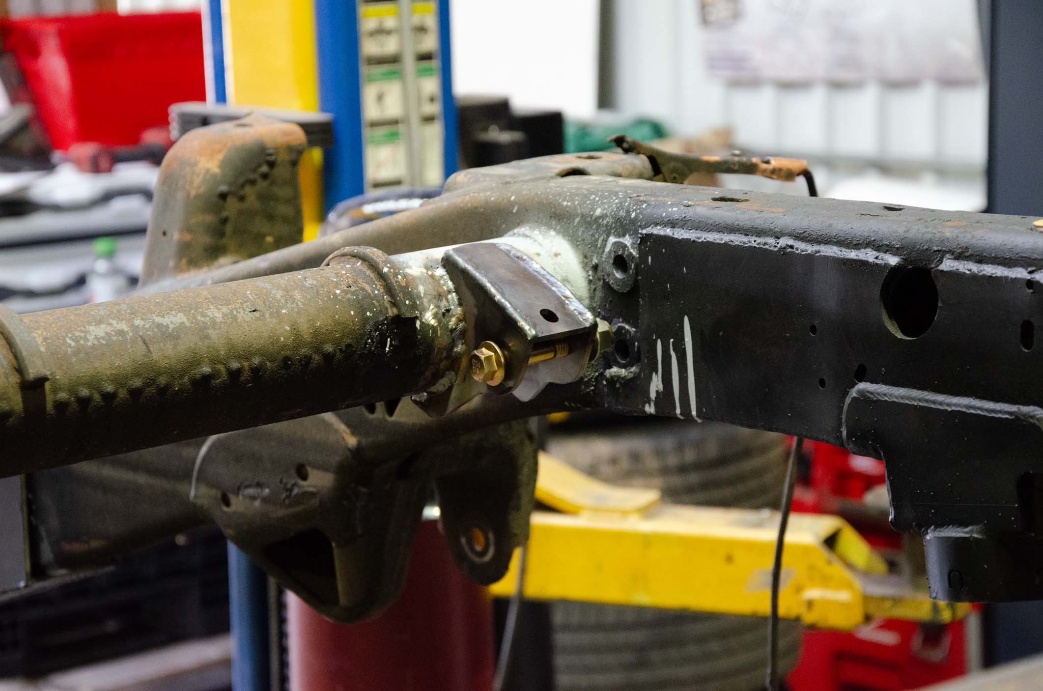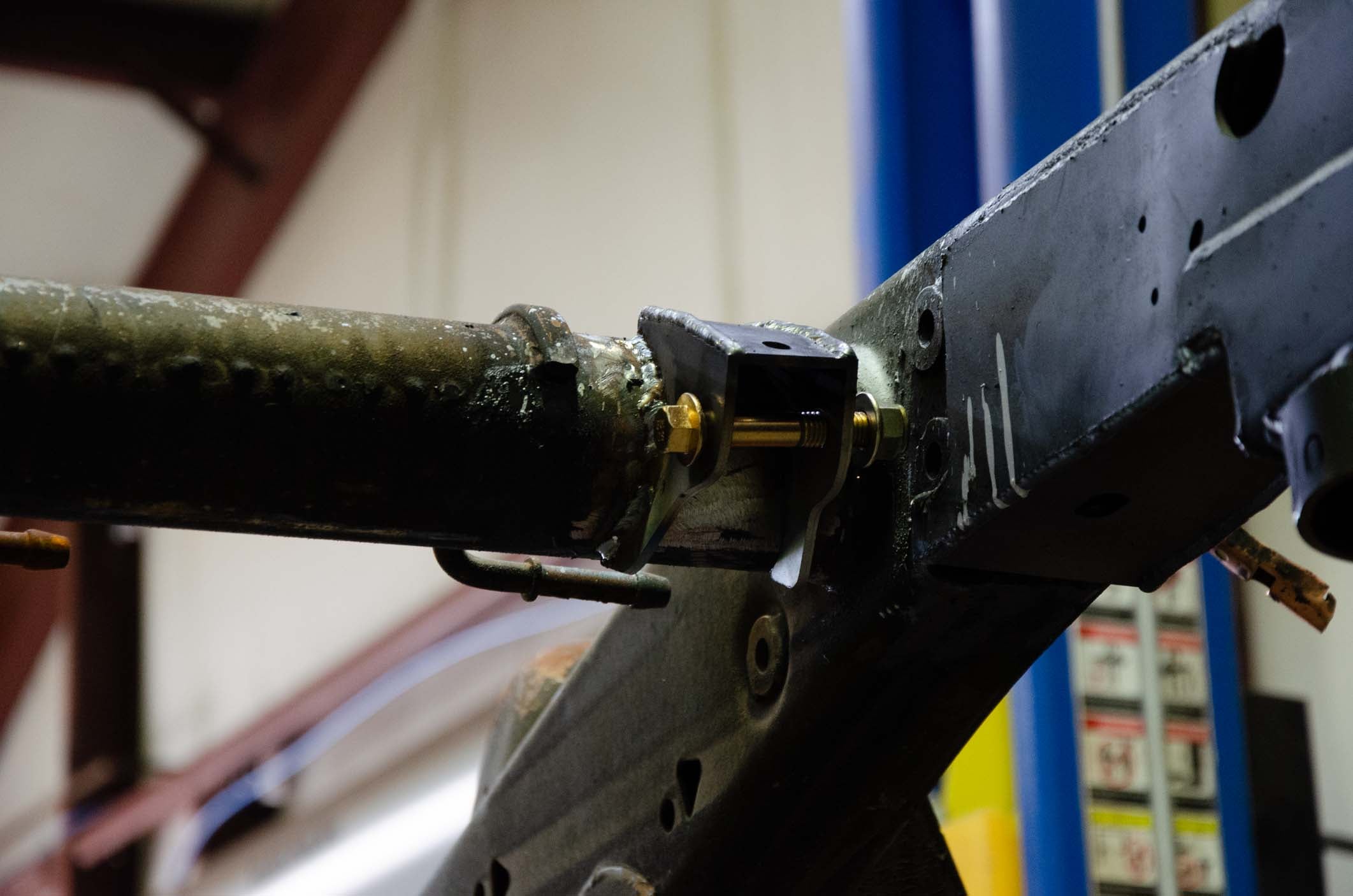 - Driver side mount is mounted on the Rear Shock Tube Crossmember