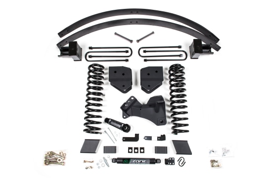 Take your Super Duty to new heights with this 6 Inch lift kit from Zone Offroad. Kits include everything needed to reliably lift your truck and the capability to run up to 37 Inch tires, including coil springs, radius arm drop brackets, steering correction and rear lift blocks or optional add-a-leafs to get the stance and performance you want.