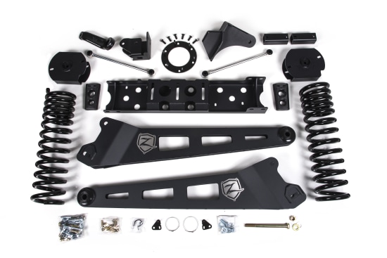 Take your RAM 2500 to new heights with this 4 Inch radius arm lift kit from Zone Offroad. Kits include everything needed from full length coil springs and heavy duty radius arms to steering correction and rear lift to level the stance.