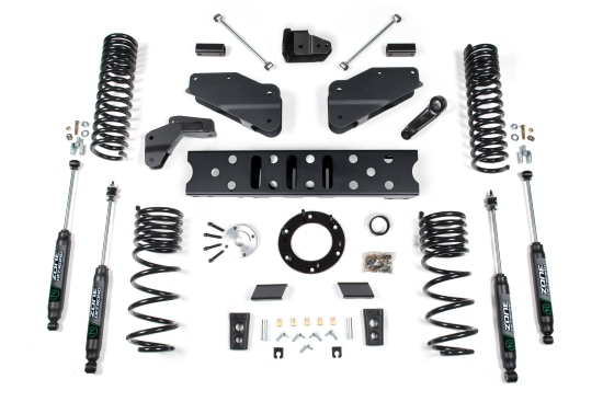 Take your RAM 2500 to new heights with this 6.5 Inch standard lift kit from Zone Offroad. Kits include everything needed from full length coil springs and radius arm drop brackets to steering correction and rear lift to level the stance.
