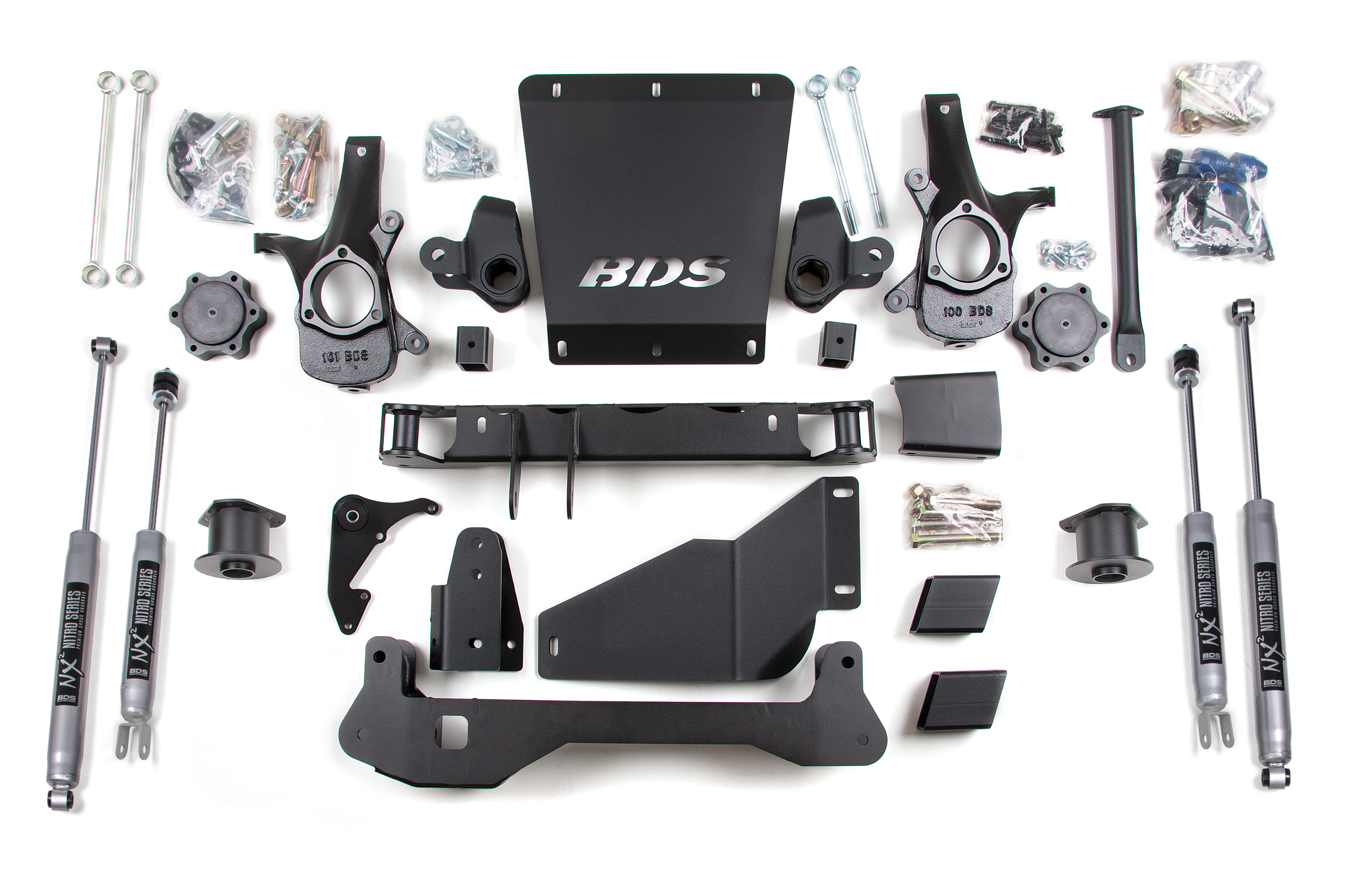 This kit takes advantage of BDS's tried and true high-clearance design for improved ground clearance, strength, and offroad protection while correcting suspension and steering geometry for great on-road handling characteristics.