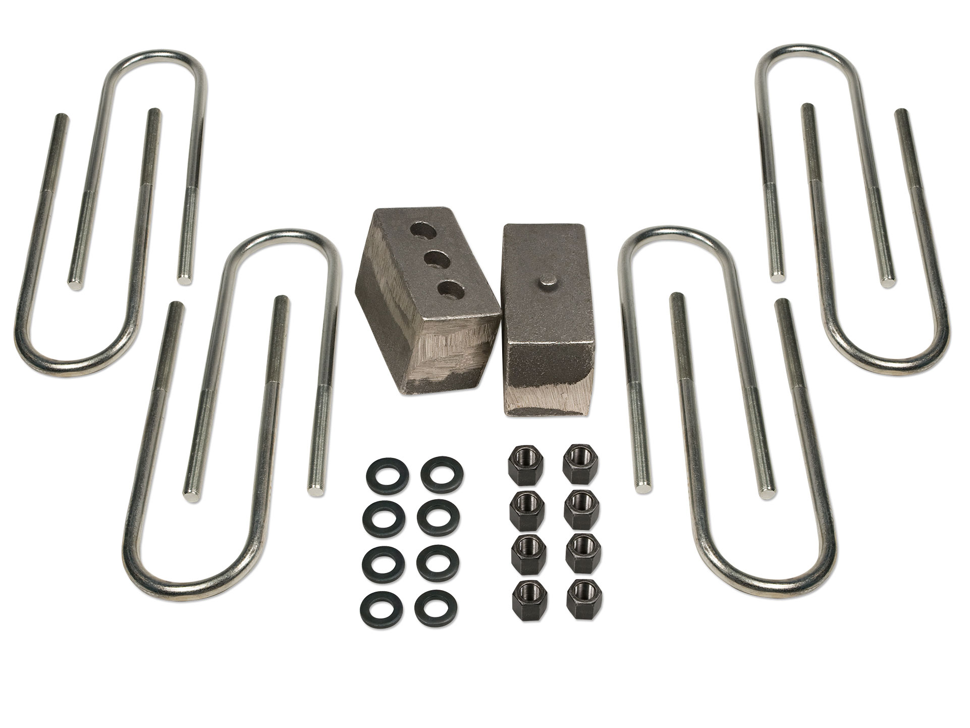 - Includes: 2) 4 Inch Cast Iron Lift Blocks, 4) Rear Axle U-bolts, 1) Hardware Bag (nuts and washers)