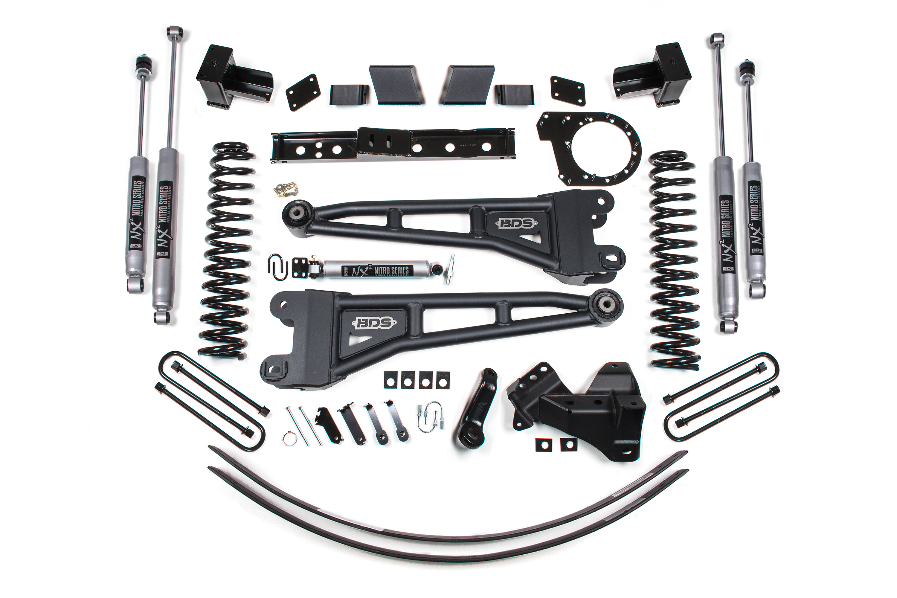Take your 2017-2019 Ford Super Duty F250 and F350 diesel truck to the next level with this 6-inch radius arm lift kit from BDS. Designed to improve stance, performance, and capability, this kit includes everything necessary to set your truck up right with clearance for up to 38 Inch Tires.
