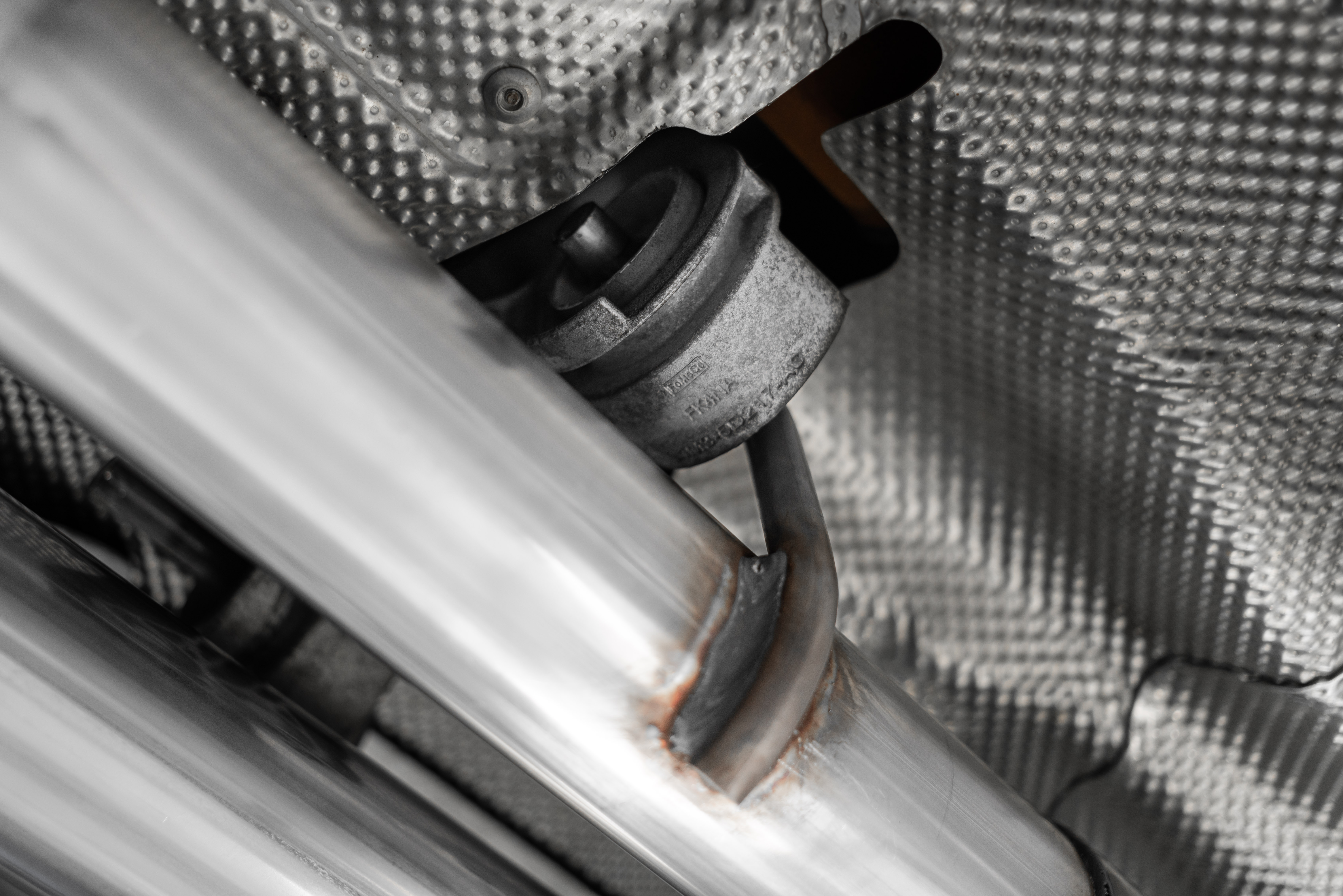 Aluminized steel 2.5 inch cat-back, dual rear with quad mirror polished exhaust tips