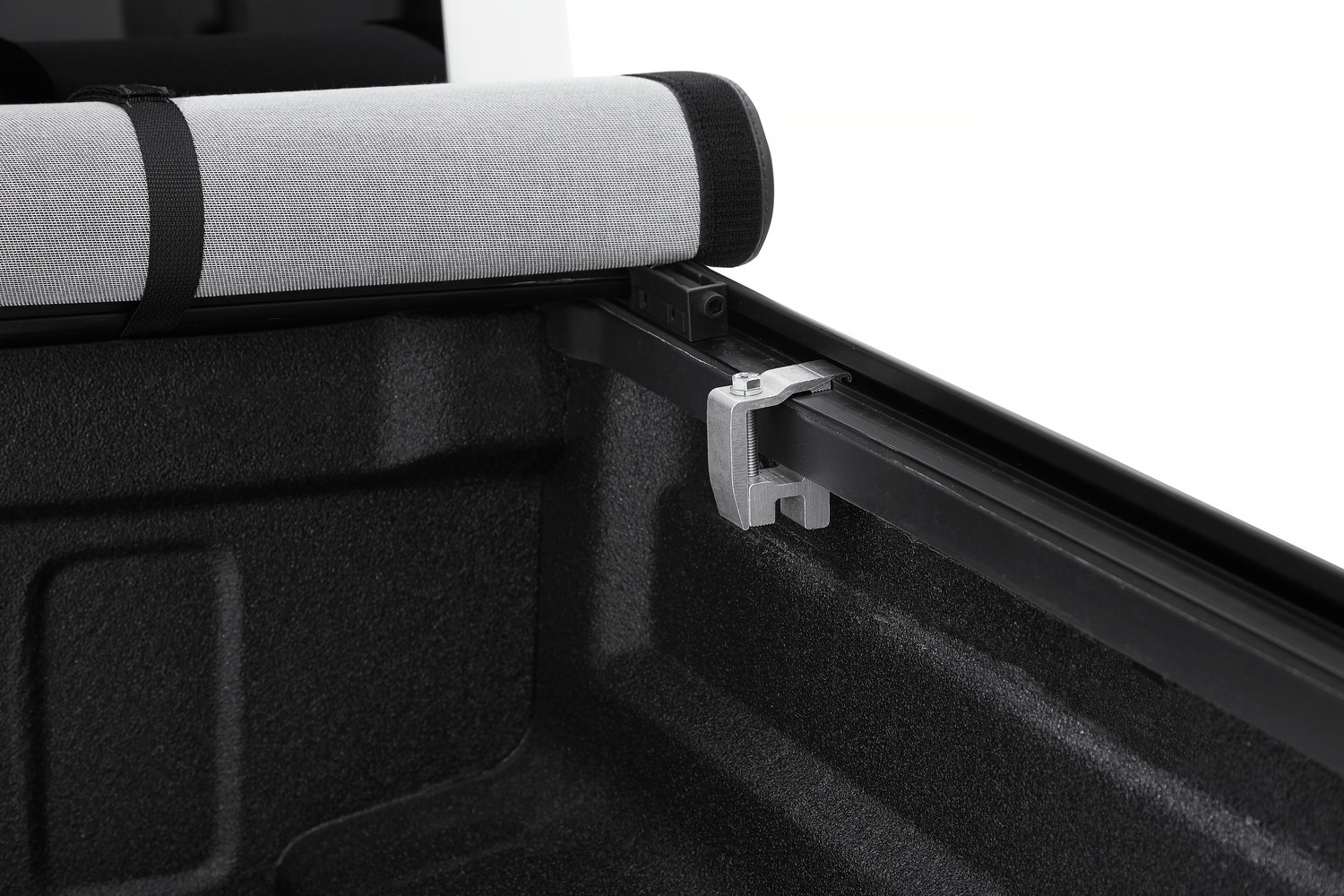 Dual pull tabs at either rear corner make roll-up super easy 100 percent access to the bed.