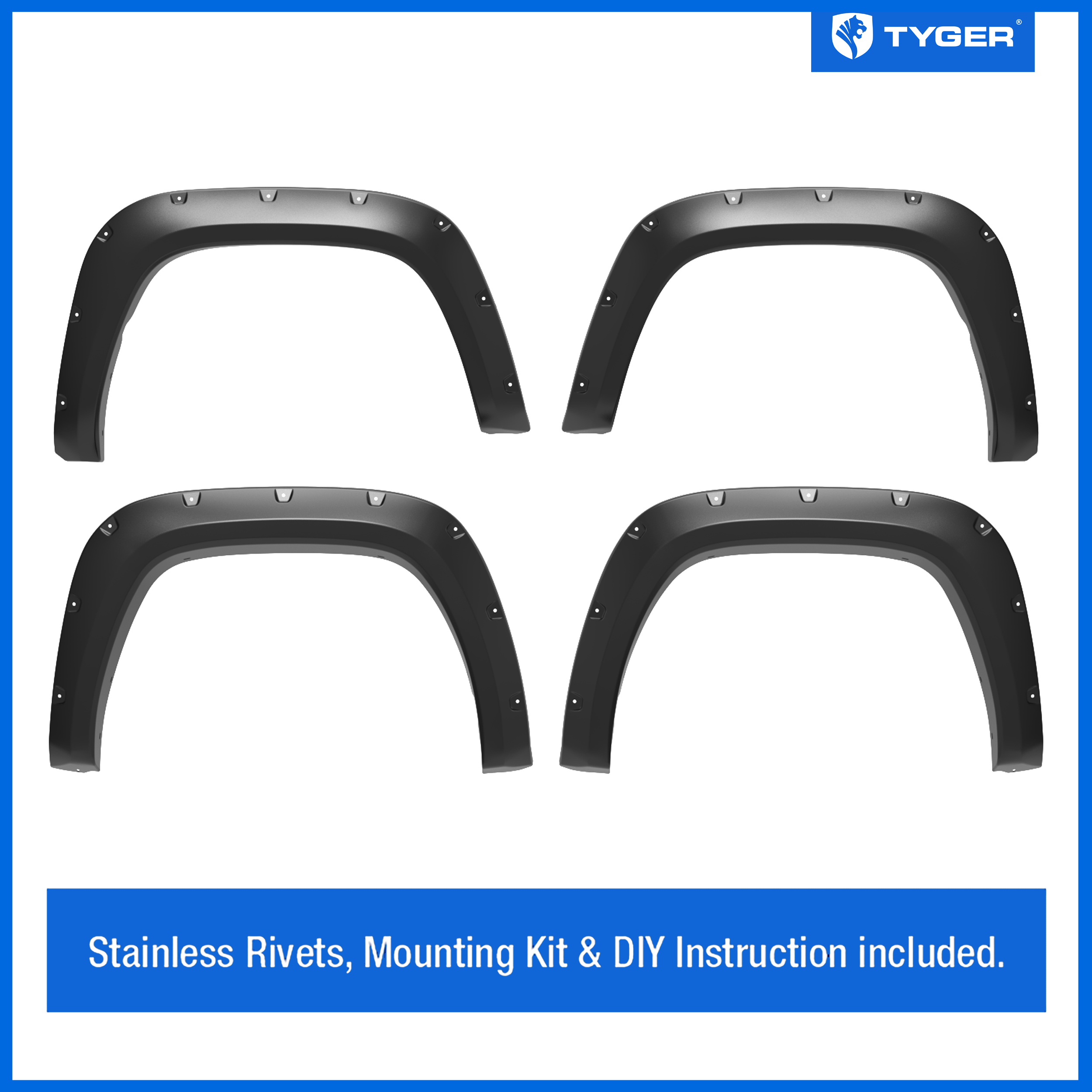 Fender Flares Compatible with 22-24 Toyota Tundra, Smooth Textured Paintable Bolt-Riveted Style 4pc Tyger Auto