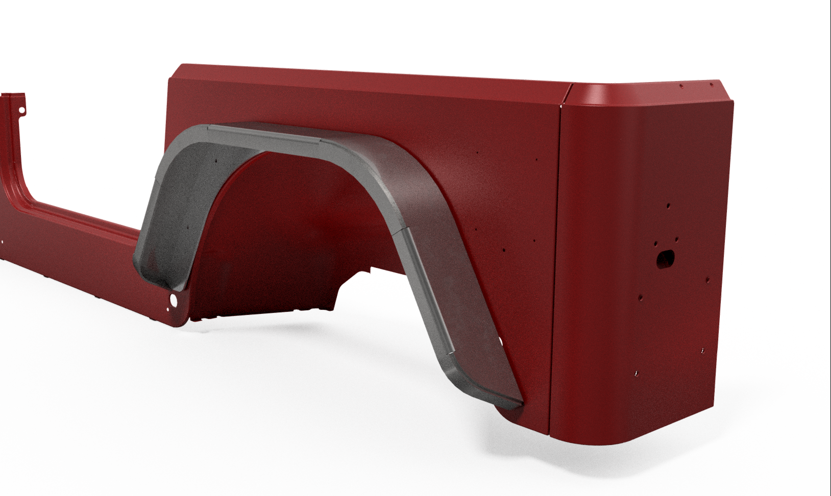 The new Motobilt double arched rear fenders will fit the Jeep TJ. They work with the factory body panels or aftermarket corner guards. These fenders have a 4 inch flare for the maximum tire coverage possible.