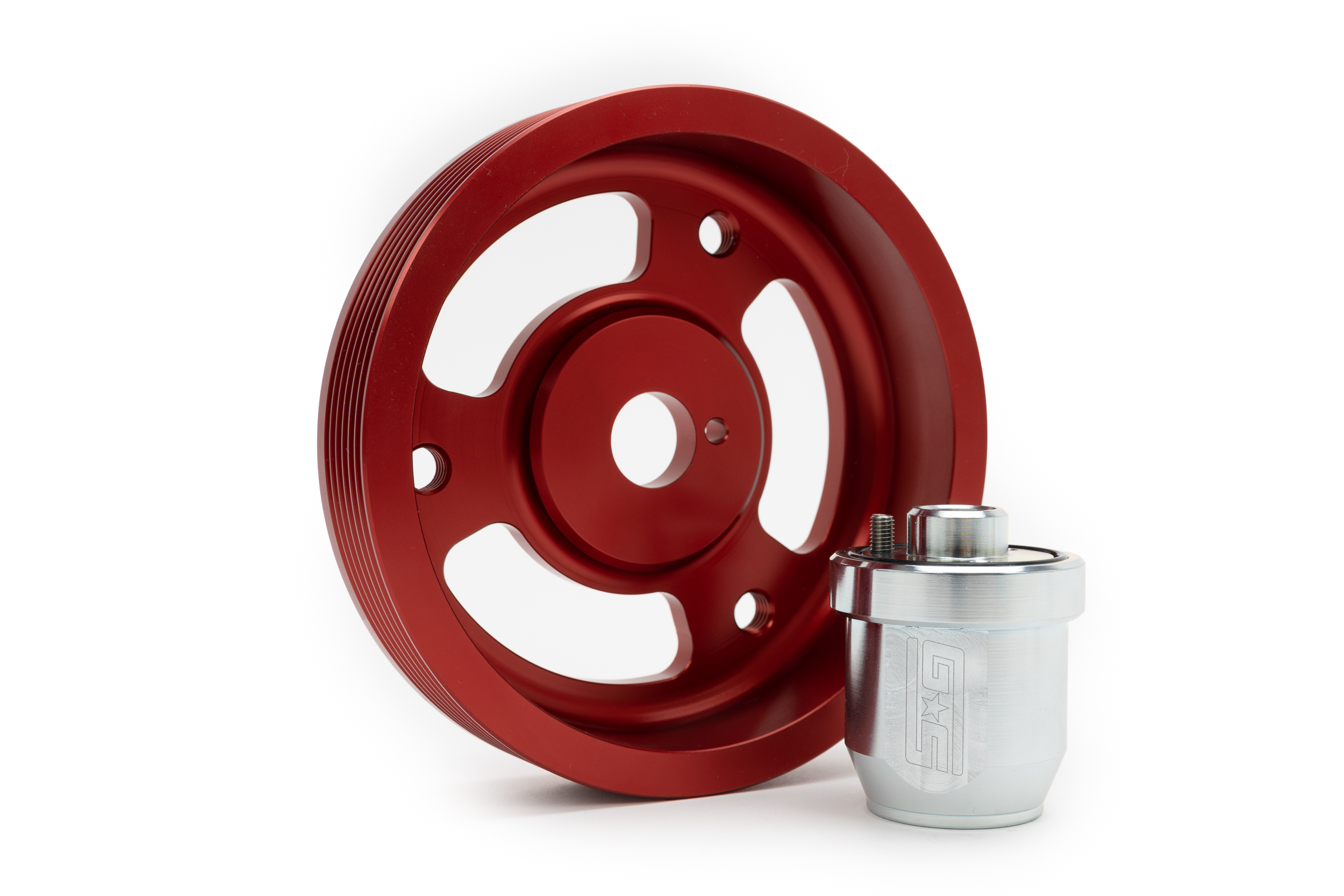 The OEM pulley Design for the newer version incorporates a rear hub into the pulley itself, which gives you very limited options when looking to upgrade to an aftermarket pulley. Our Engineers saw this as an opportunity for a plug-and-play solution and got to work.