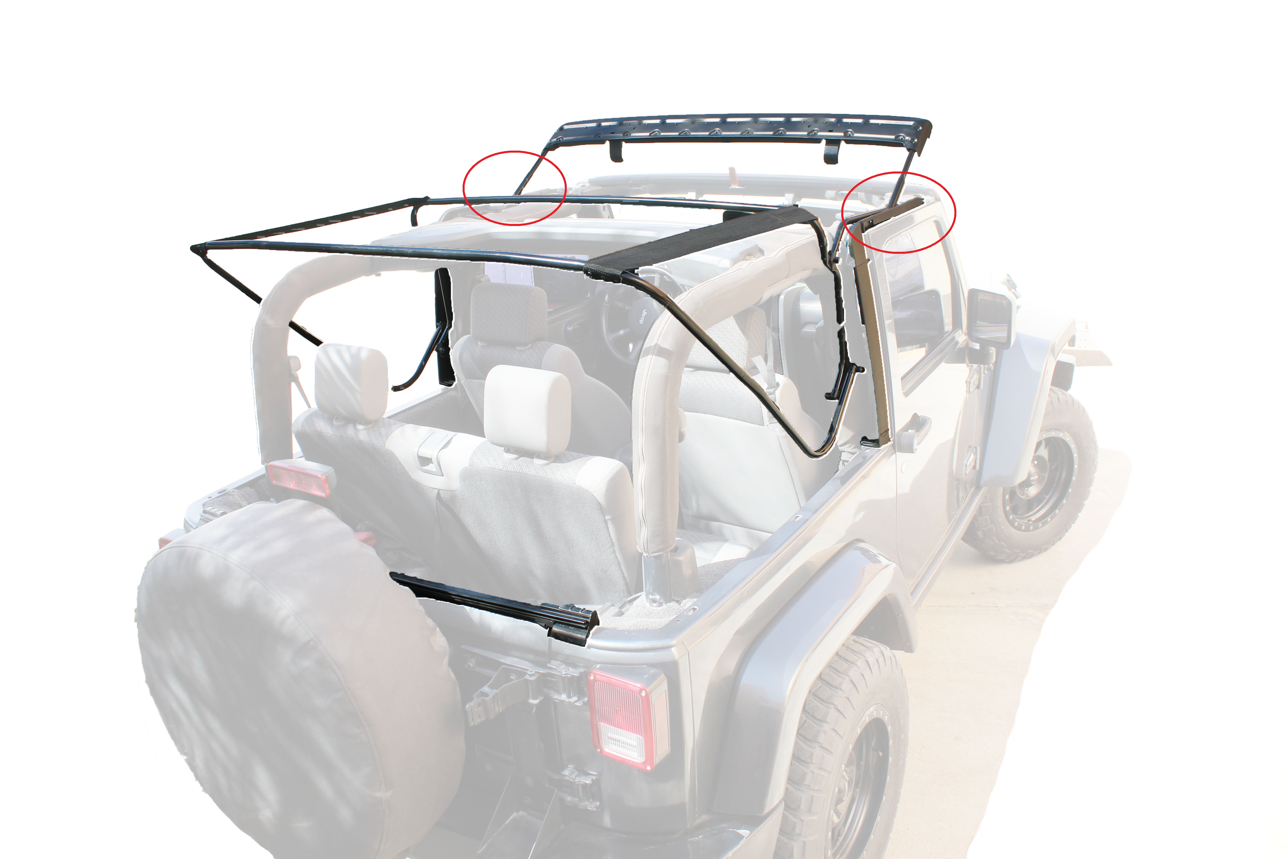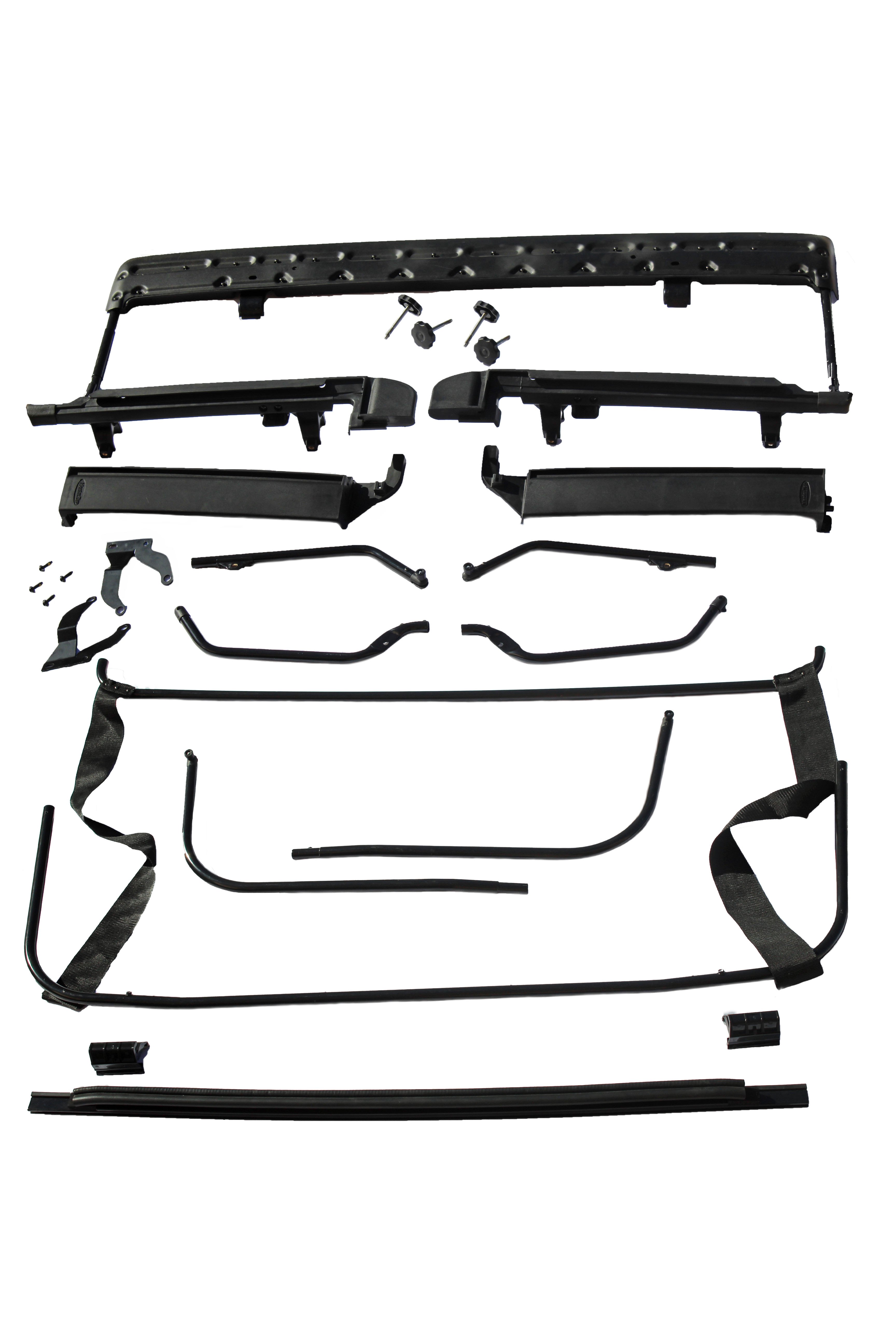 • Each full hardware top includes all the bows, hardware, windshield header and door surrounds needed for a complete soft top installation