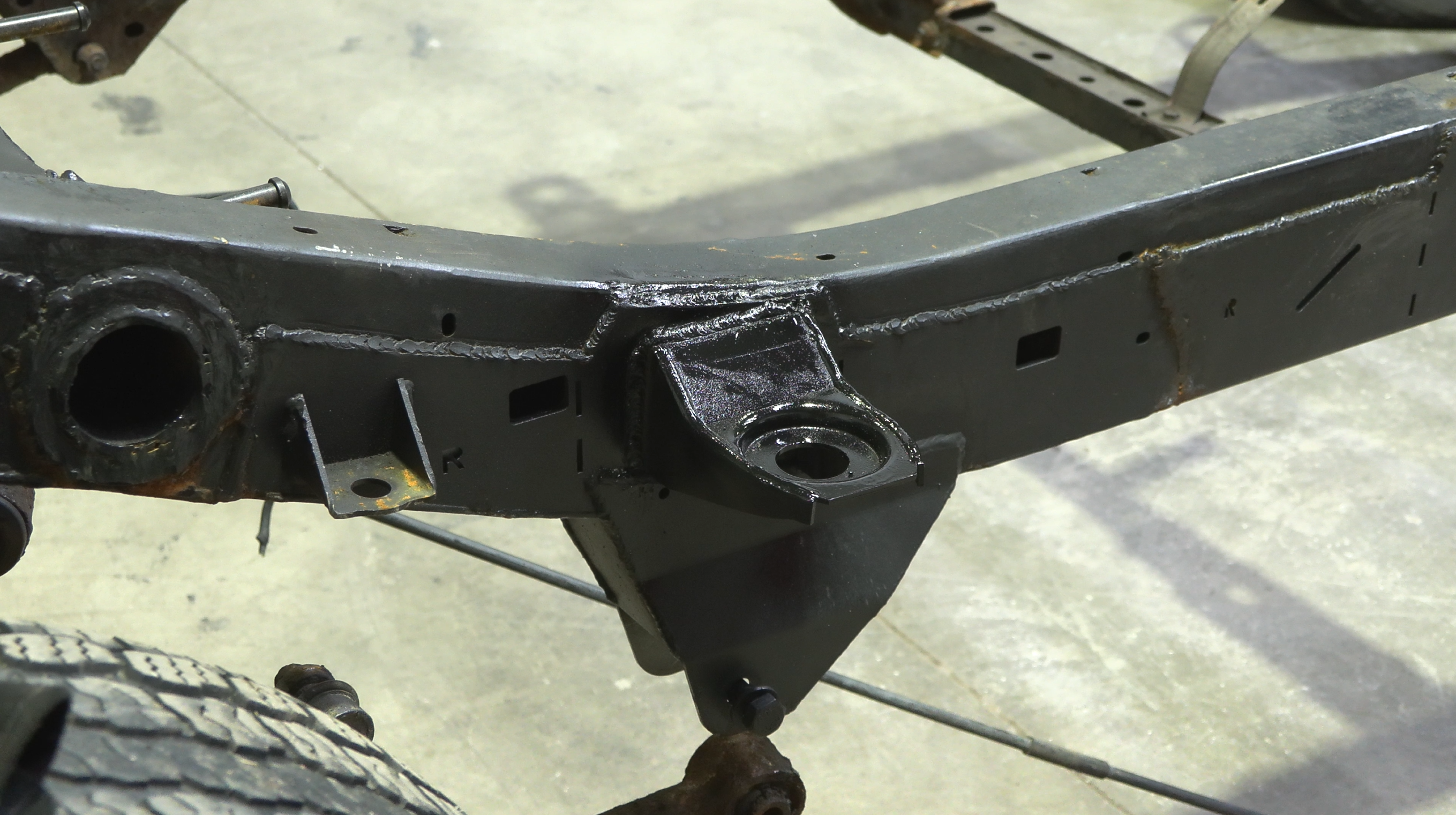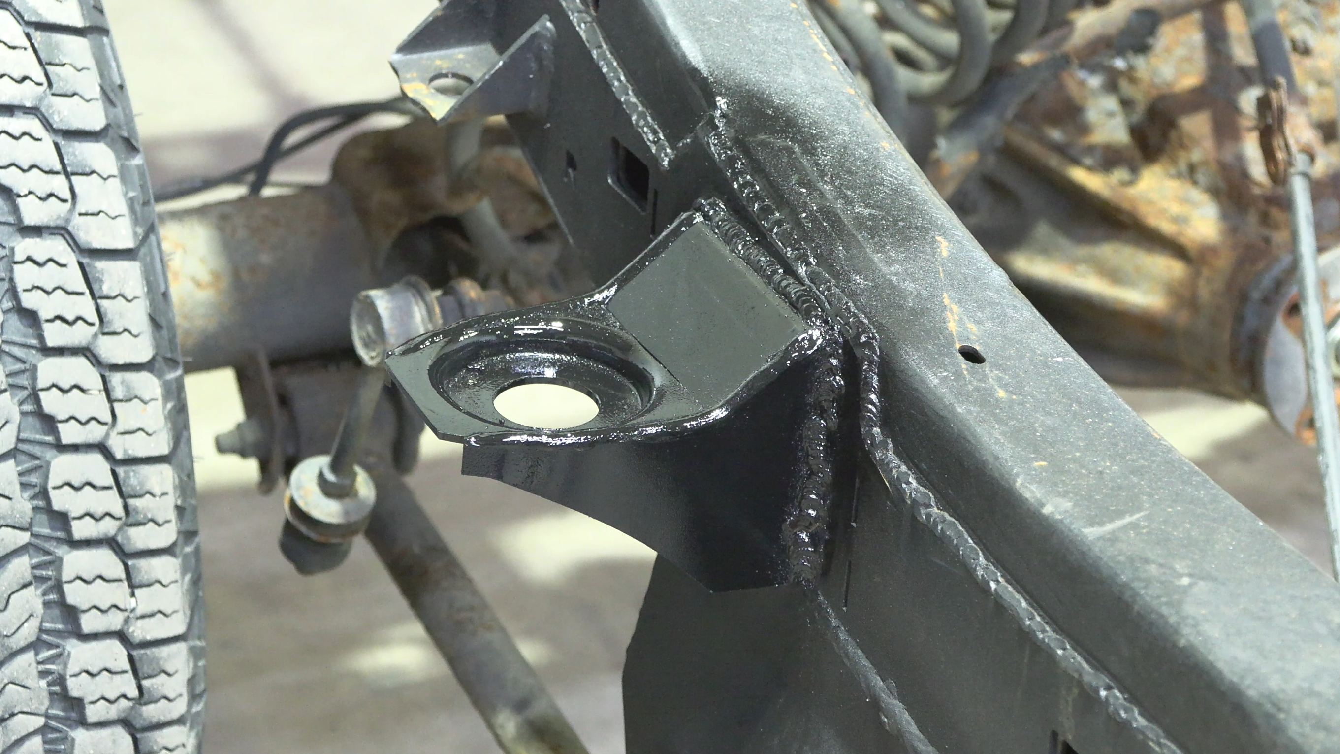 - Mounts on the outside of the Frame Rails beneath the Rear Door in front of rear Fender