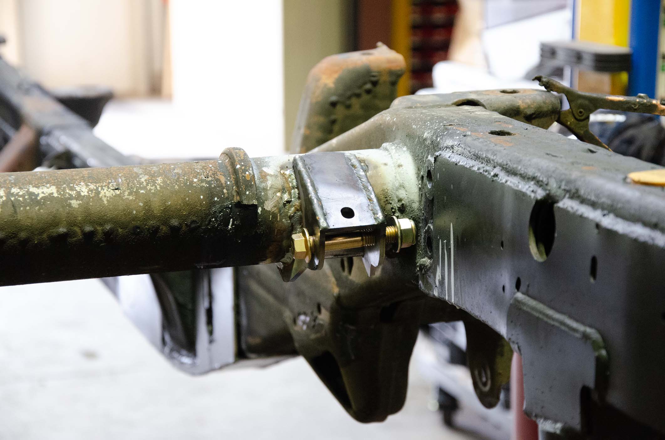 - Driver side mount is mounted on the Rear Shock Tube Crossmember