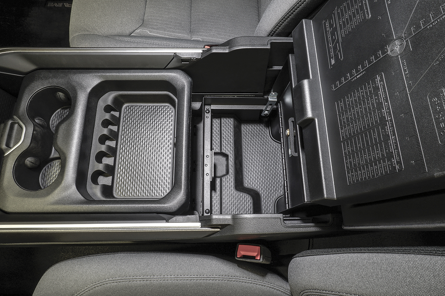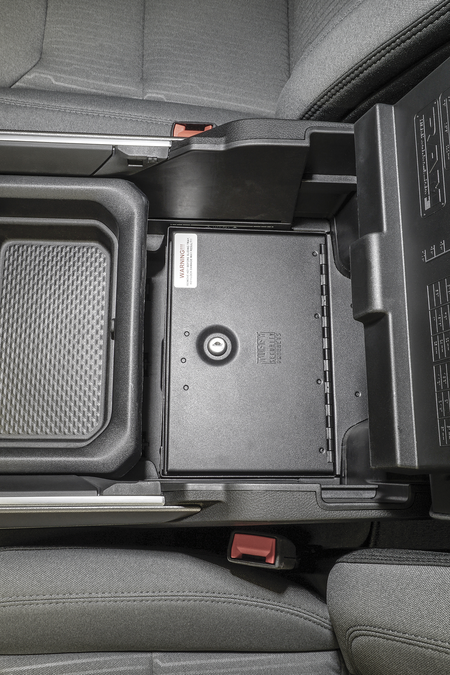 The Tuffy console safe transforms your OEM console into a heavy-duty lockable storage area utilizing Tuffy's Pry-Guard locking system with 10 tumbler double bitted security key to help protect valuables from opportunistic thieves.