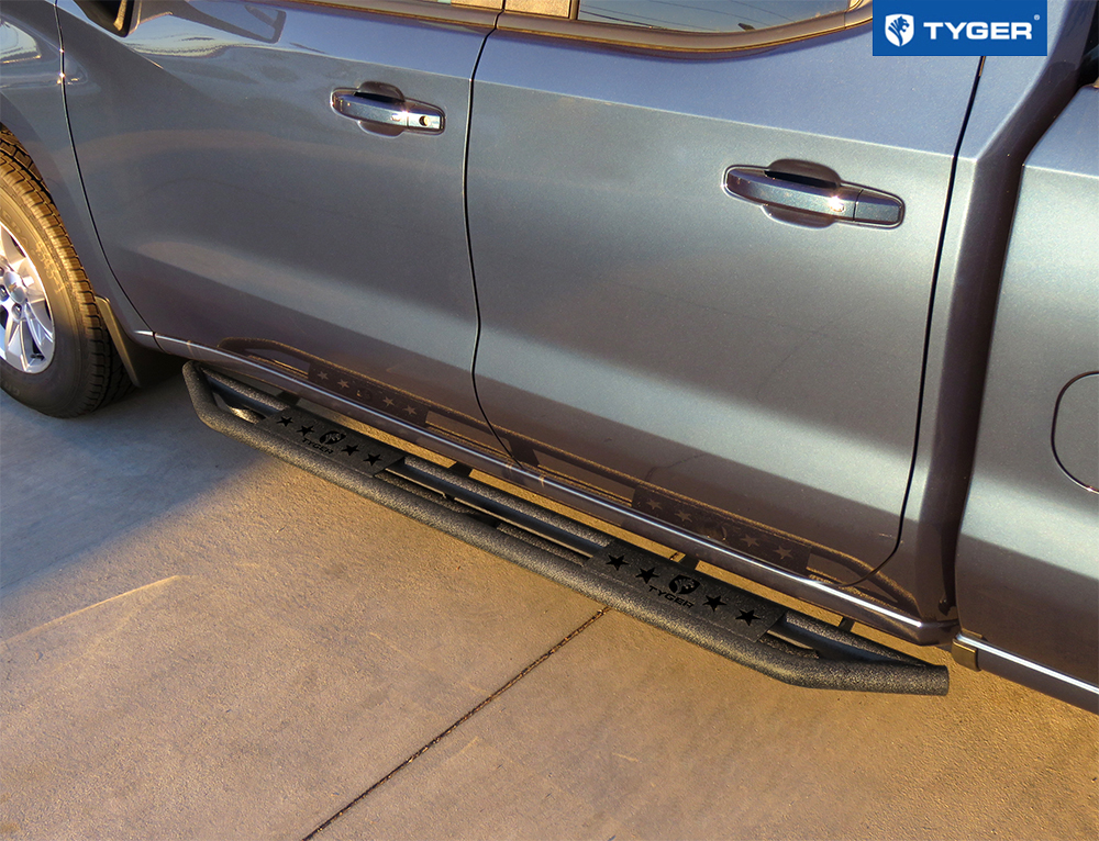 - TYGER unique patented STAR metal step pads serve a helpful step in and out of the cab. Particularly useful on lifted pickup trucks and SUVs. Dual girder system provides maximum protection for underside from damaging impacts.