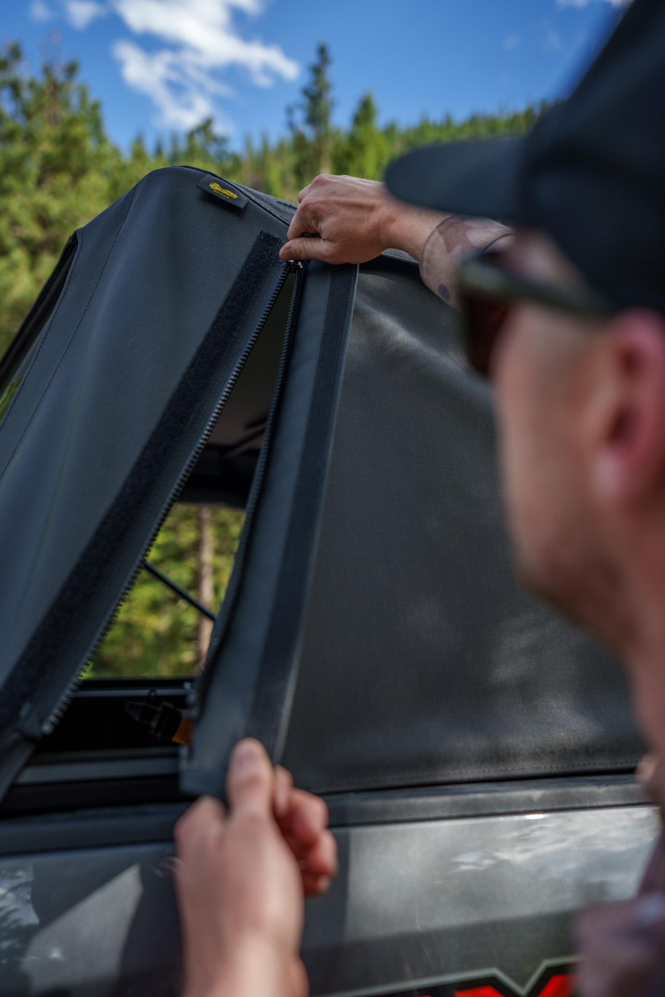 - Removable and replaceable DOT-approved, tinted rear window panel