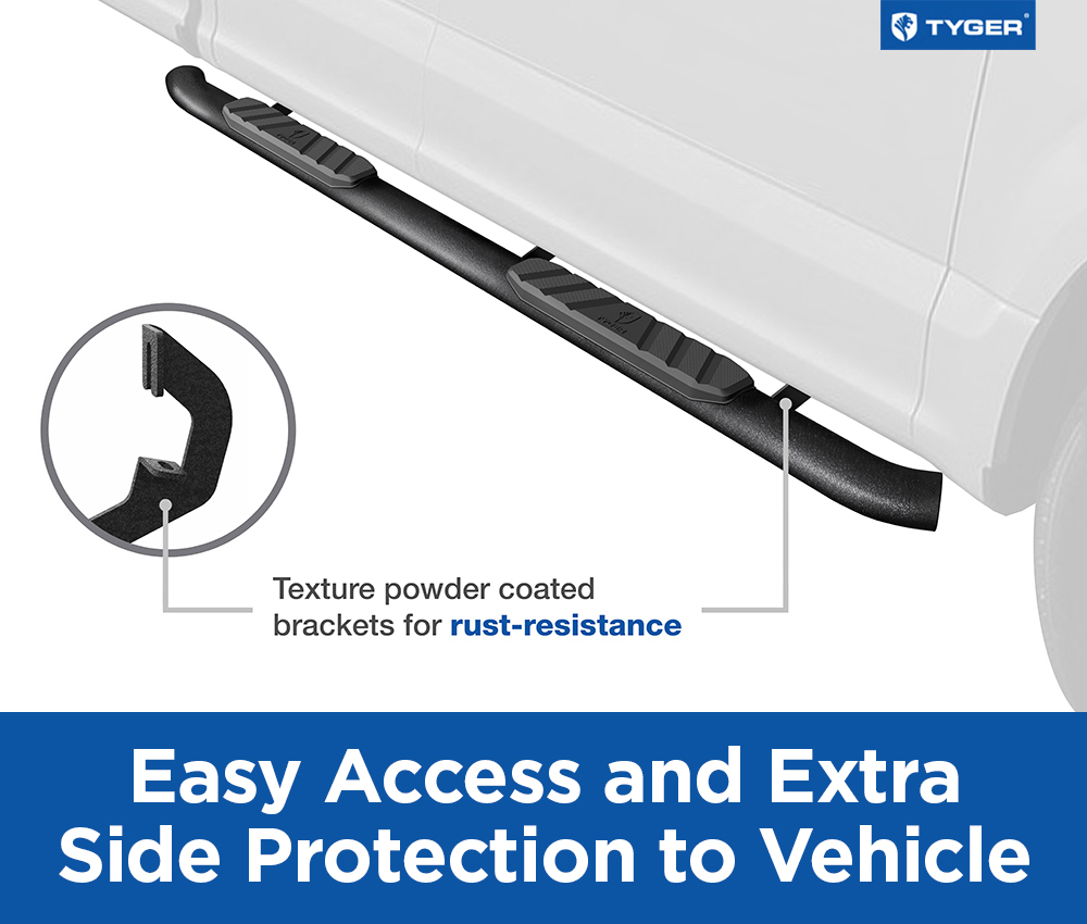 Tyger Rider 3.5 Inch Step Bars 02-08 Ram 1500 03-09 2500/3500 Textured Black Tyger Auto